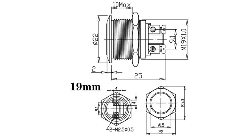 Антивандальная кнопка з фіксацією 19мм.