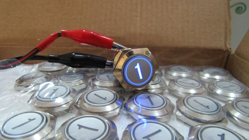 Антивандальна кнопка для ліфта без фіксації 1 поверх 19 мм синій колір