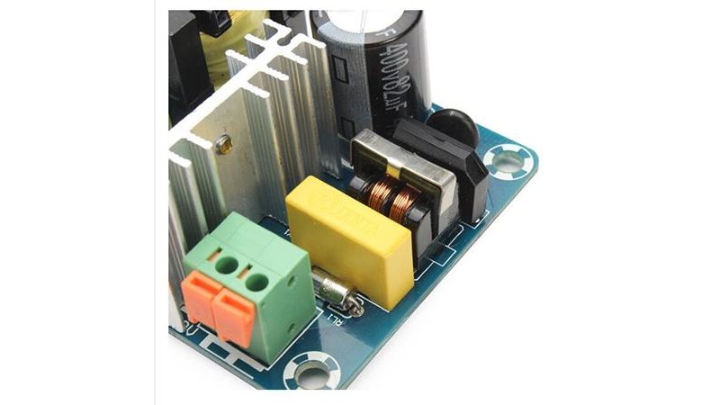 На платі присутні великі радіатори, сама плата виконана у відкритому виконанні, тобто призначена для установки в який-небудь пристрій і свого корпусу не має. На платі присутній вхідний фільтр, обмежувач пускового струму і безгвинтовий клемник по входу 220 В. Вихідна обмотка трансформатора намотана в 5 дротів. Встановлений ШИМ контроллер CR6842S, який є повним аналогом відомішого контроллера SG6842. Силовий транзистор 600 Вольт 20 Ампер, 0.19 Ом.