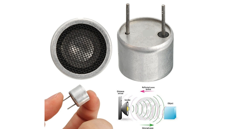 Приймач AW8R40 ультразвукового датчика HC-SR04 Arduino. Правий ультразвуковий випромінювач (маркований літерою R - resiver) це приймач відбитого від об'єкта ультразвукового сигналу (луни).