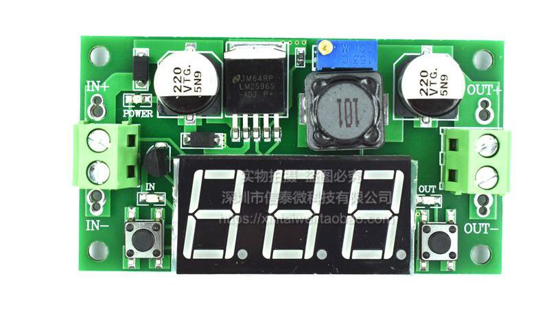 Перетворювач постійної напруги знижує зі світлодіодним вольтметром з вихідною регульованою напругою 1,1 - 37,0В і робочим струмом до 3,0А.