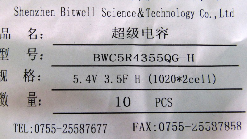 Іоністор суперконденсатор Bitwell 5.4V 3.5F.