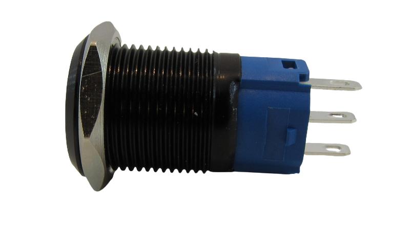 Кнопка антивандальна 16мм чорна selflock з фіксацією 220VAC 5pin. Без підсвітки.