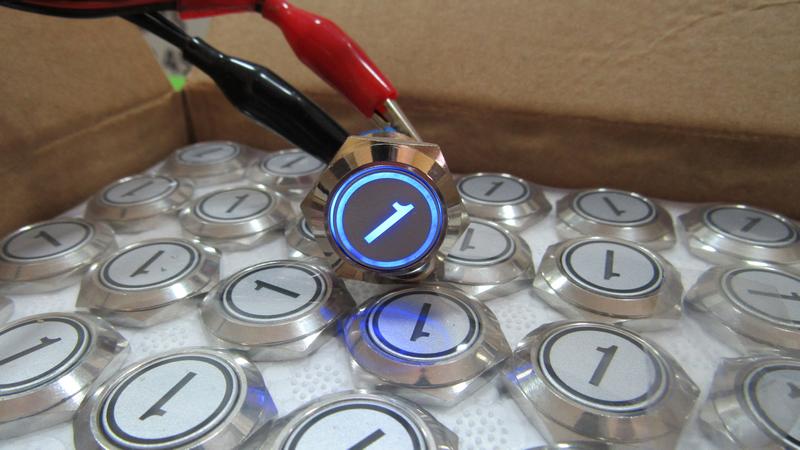 Антивандальна кнопка для ліфта без фіксації 1 поверх 19мм синій колір