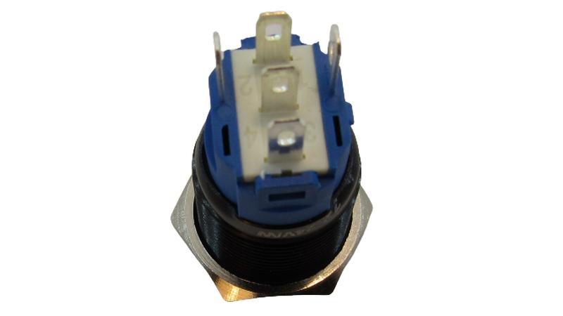 • Контакти: 2 положення, 3 контакти: 1 загальний COM, 2 на замикання та розмикання, (позначення на корпусі: NO-COM-NC) + 2 контакти підсвічування(позначення на корпусі: +,-)