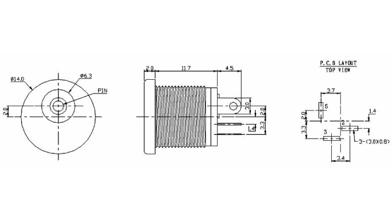 Конектор роз`єм живлення DC 022 5.5*2.1. Розмір гнізда вказаний на рисунку.