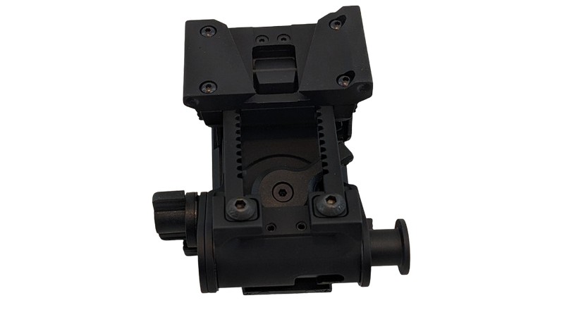Кріплення має кілька точок регулювання для точної посадки і дозволяє відкидати ПНВ, коли він не використовується.
