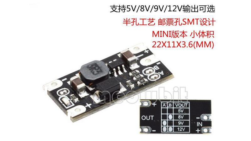 Мініатюрний підвищуючий модуль DC-DC boost від 3.7V до 12V out 5V 8V 9V 12V. Міні DC-DC понижуючий перетворювач напруги являє собою конвертер постійного струму 3,7-12V в 5,8,9,12V (знижуючий режим, вхід повинен бути більше, ніж на виході). Відрізняється компактними розмірами і високою ефективністю.