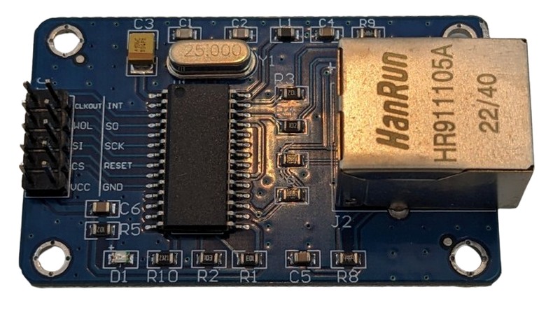 Модуль Ethernet ENC28J60 побудований на базі нової мікросхеми Microchip ENC28J60, що є самостійним контролером Ethernet, що має всі функції, необхідні для підтримки більшості протоколів. Модуль підключається безпосередньо до більшості мікроконтролерів з стандартного інтерфейсу SPI і працює на швидкостях до 20МГц. Можна використовувати з будь-якими мікропроцесорними системами - MCU / ARM / PIC / AVR / MSP430 / PLC / STM32 / Arduino /