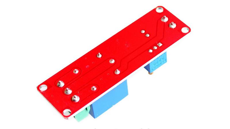 Реле спрацьовує через 0-10 сек після подачі живлення 12 вольт на плату. Час затримки можна збільшити помінявши конденсатор або потенціометр на аналогічні з великим номіналом. Кероване максимальне навантаження 220 вольт / 10А.