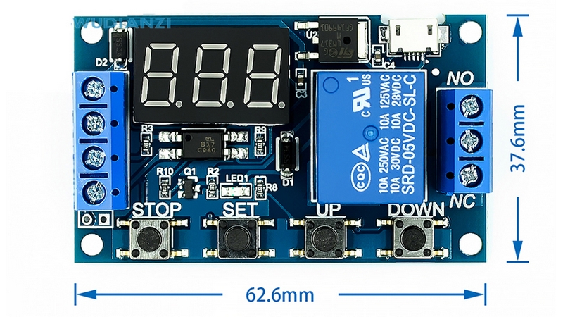 Таймер, може використовуватися для періодичного включення вентиляції, опалення, освітлення, мікро-насосів, і інших пристроїв з живленням як від постійного, так і змінного напруги.