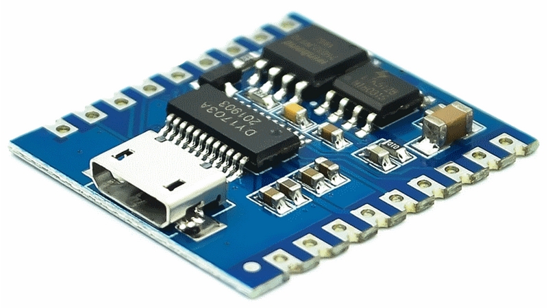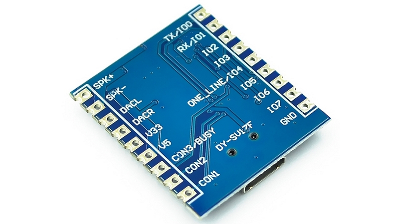 DY-SV17F - це інтелектуальний MP3 модуль. Він об'єднує управління по I / O і управління послідовним портом UART, управління послідовним портом ONE_line.