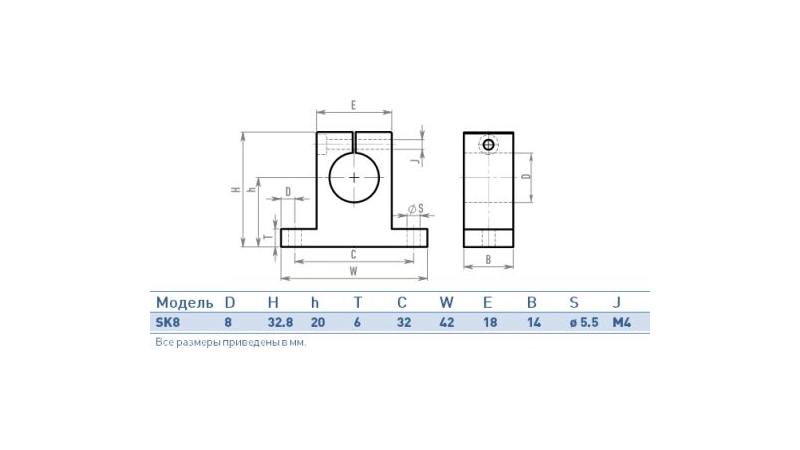 Тримач полірованого вала діаметром 8 мм для фіксації паралельно опорній площині.