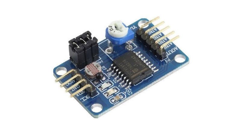 Універсальний аналогово-цифровий і цифро-аналоговий перетворювач, зібраний на мікросхемі PCF8591, зі вбудованим потенціометром, фоторезистором і термістором. Цифро-аналоговий і аналого-цифровий перетворювач на PCF8591 схемі для Arduino. Цей модуль представляє з себе 8-бітовий КМОП (CMOS) пристрій з одним чіпом, одним джерелом живлення, чотирма аналоговими входами, одним аналоговим виходом і послідовним I2C-інтерфейсом шини.