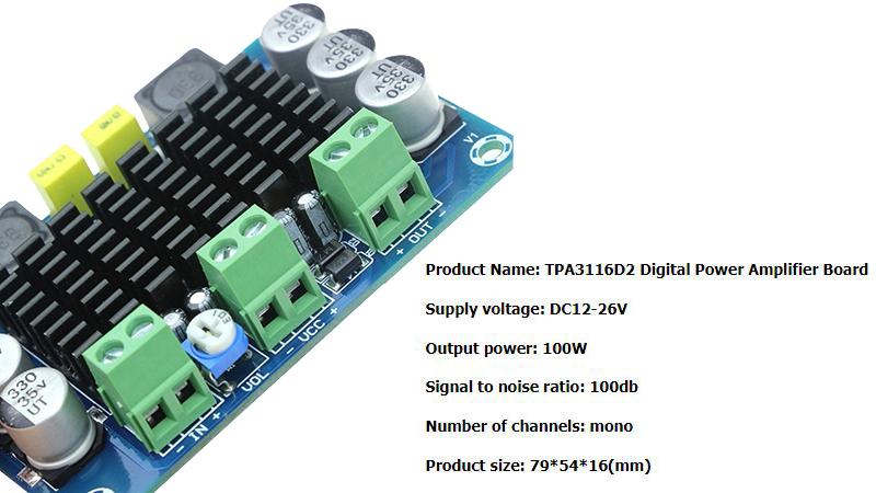Плата цифрового підсилювача потужності XH-M542 моно 100Вт TPA3116D2.