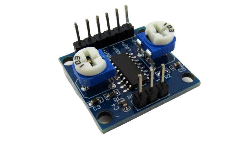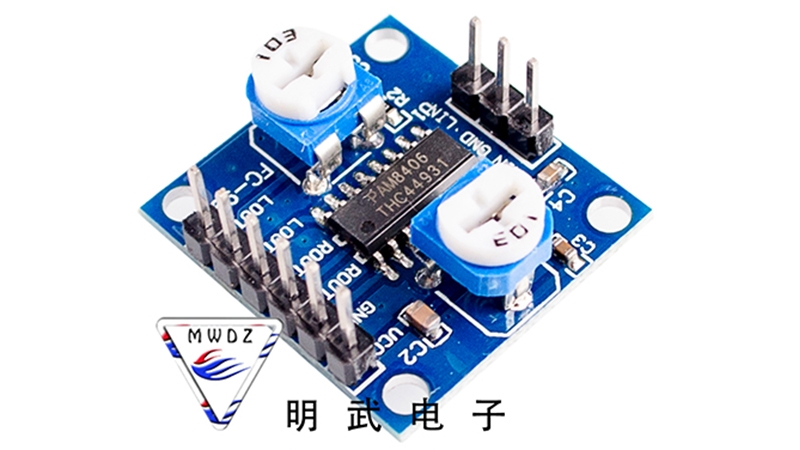 Аудіопідсилювач на PAM8406 2x5W - якісний модуль стерео-підсилювача звуку на мікросхемі PAM8406 з вихідною потужністю до 5Вт на канал при 10% викривлення при опорі навантаження 8 Ом та напрузі живлення 6В. Максимальна вихідна потужність може становити до 5Вт при навантаженні 4Ом.