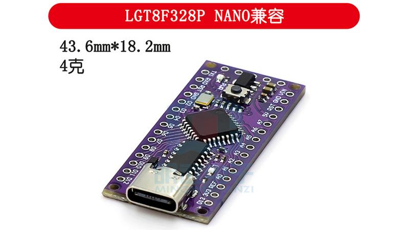 Плата контролер LGT8F328P LQFP32 MiniEVB Arduino NANO V3.0. Клон Arduino NANO на чіпі LGT8F328P від ​​компанії LogicGreen з підвищеною тактовою частотою до 32МГц як від внутрішнього PLL-синтезатора, так і від кварцового генератора, регістр управління системним годинником налаштовується в бутлоадері.