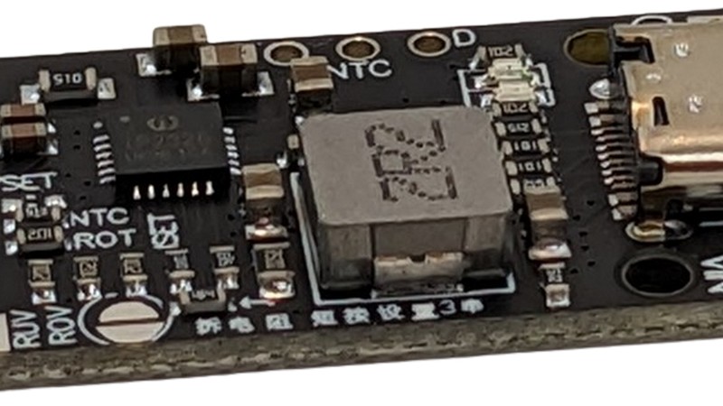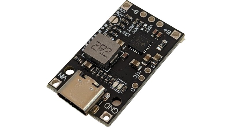 Високострумовий зарядний пристрій для 1S Li-Ion акумуляторів побудовано на базі спеціалізованого перетворювача IP2312. Призначено для швидкої зарядки 1S збірок Li-Ion акумуляторів напругою 4.2 В / 4.35 В. Живлення зарядного пристрою здійснюється від джерела напругою від 4.5 до 5.5 В, що підключається через Type-C роз'єм. Максимальний зарядний струм перетворювача становить 3А.