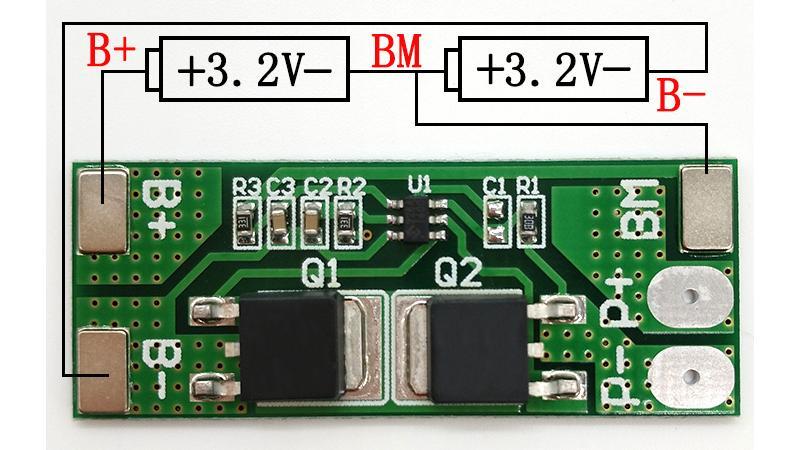 Плата захисту акумулятора LiFePo 6.4V 2S 10A.