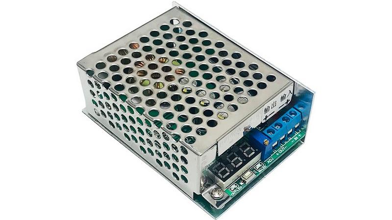 Понижуючий перетворювач DC 3.5-30V to 0.8-29V 10A 300W. Вбудований вольтметр відображає вхідну або вихідну напругу. Для перемикання потрібно використовувати кнопку 2 на платі, світлодіоди відображають яка напруга зараз показується. Вольтметр можна вимкнути, потрібно натиснути і утримувати кнопку 2 приблизно 3 секунди. Дисплей напруги відкалібрований на заводі, додаткове калібрування не потрібне.