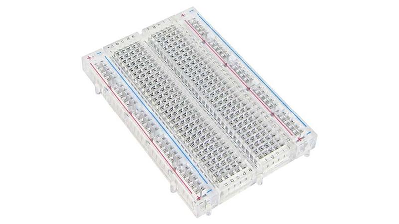 Прозора макетная плата для прототипування. Є пази для з'єднання з іншими такими ж платами. На задній поверхні кріпильна липка стрічка. Бічні частини з доріжками живлення з обох сторін можна від'єднати. Чотири рейки з боків макетки призначені для підключення живлення і землі по 50 контактів з кожного боку. В середині макетної дошки розташовані 60 груп по 5 з'єднаних між собою контактів. Контакти можна з'єднувати проводами з зачищеними кінцями, але значно зручніше скористатися спеціальним набором перемичок або спеціальними сполучними проводами.