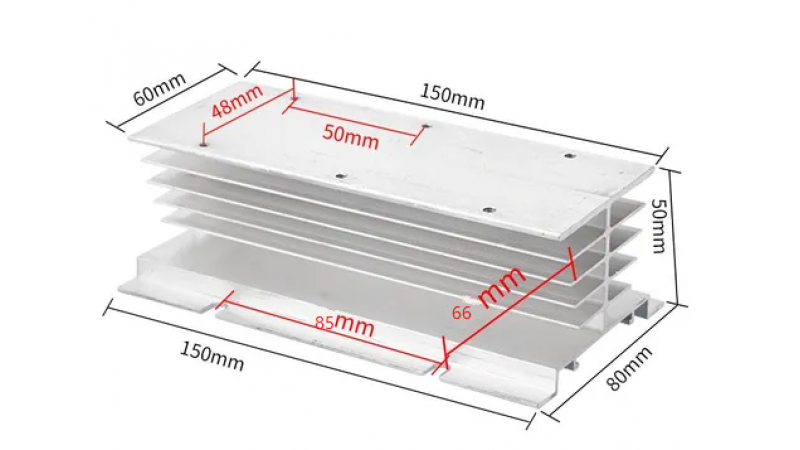 Радіатор охолодження виконаний з алюмінію і оснащений кріпленням для твердотільного реле SSR. Він розроблений спеціально для зменшення тепловиділення під час роботи твердотільних реле. З цією системою охолодження реле здатні витримувати високі навантаження без перегріву протягом тривалого часу.
