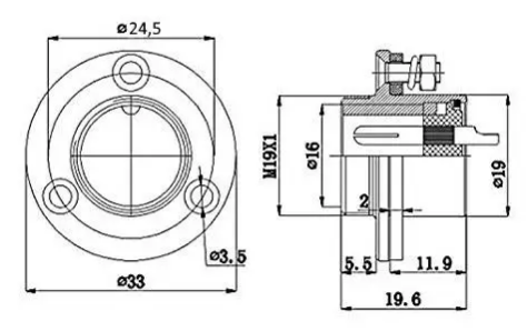Роз'єм GX-16 з фланцевим кріпленням. Дозволяє якісно та надійно комутувати струмопровідні лінії шляхом глибокої посадки з'єднання, а також гайкою-фіксатором, що загвинчується, запобігаючи вириванню кабелю.
