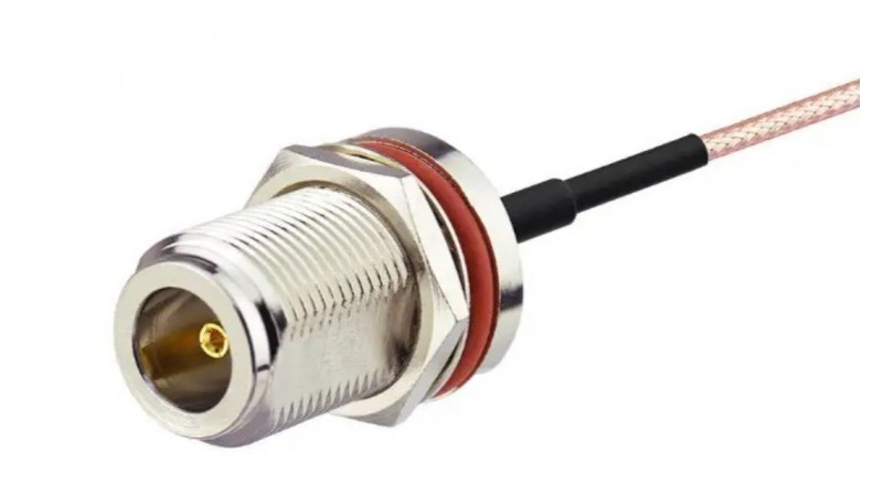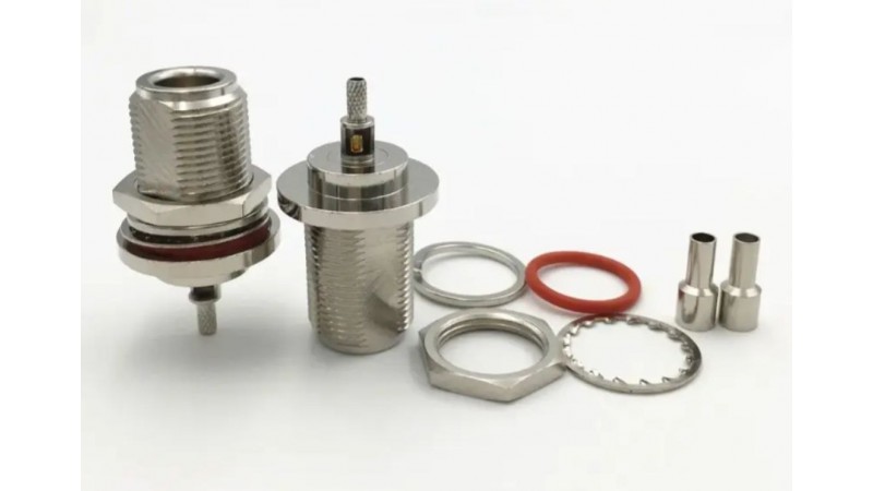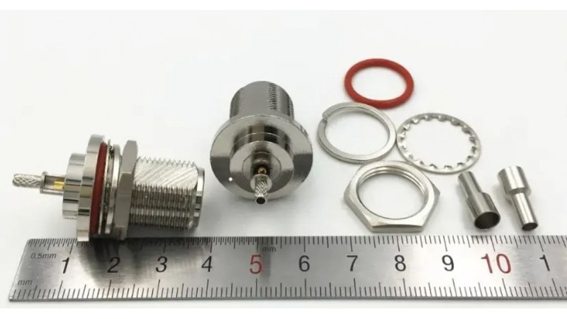 Роз'єм типу N female обжимний мама з гайкою для монтажу на корпус – це високочастотний роз'єм, який призначений для підключення кабелів типу RG316, RG174 або LMR100. Оснащений гайкою для надійного кріплення на панелі або корпусі пристрою. Забезпечує низький рівень втрат сигналу та стабільне з'єднання. Ідеально підходить для використання в радіочастотних системах, антенах, комунікаційних пристроях.