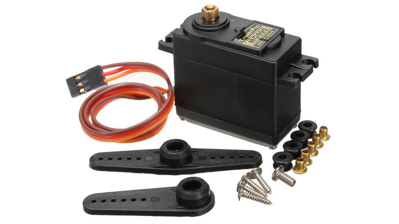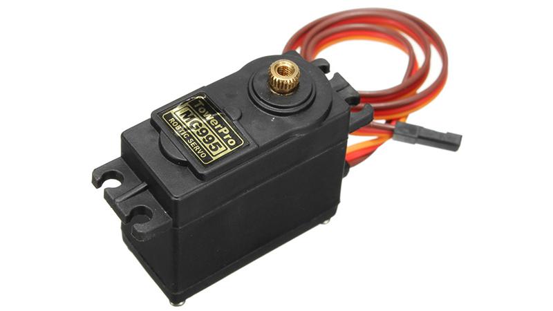 Cервопривід MG995 є одним з найкращих у своєму сегменті по співвідношенню ціни і якості. Редуктор виконаний з металу. Вивідний вал встановлений на 2 шарикопідшипники, що значно подовжує термін служби сервоприводу. Кут повороту 90°