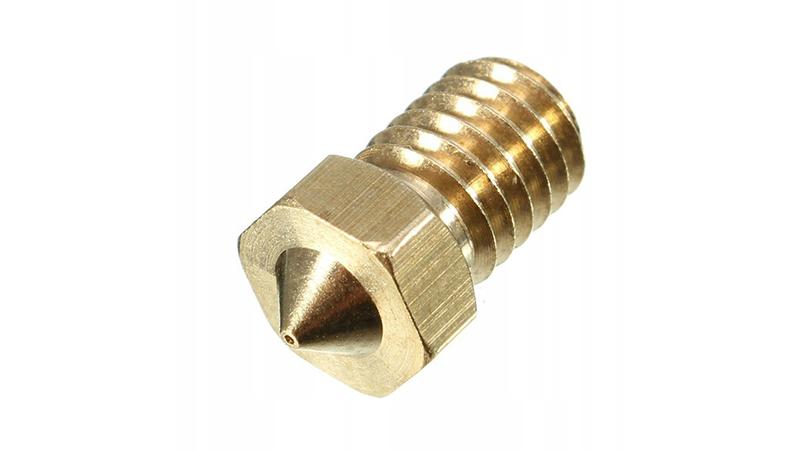 Сопло E3D 0.35мм під 1.75мм нитка для 3D-принтера. Матеріал сопла - мідний сплав. Конструкція проста - різьбова частина і головка. У центральній частині сопло оснащено вхідним отвором, діаметр якого 1,75 мм. Біля вершини головки воно звужується до 0,35 мм. У підставі конус виконаний у формі гайки. Завдяки цьому її легко вкрутити в нагрівальний блок. На нарізної частини різьблення М6. Сопло сумісно практично з усіма класичними екструдерами, що використовують филамент, діаметр якого 1.75 мм. Однак найкраще застосовувати його в роботі з екструдерами E3D. Після установки сопла істотно підвищуються точність і якість друку, але при цьому на друк витрачається більше часу.