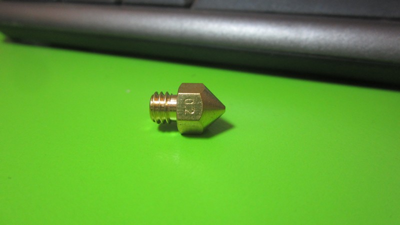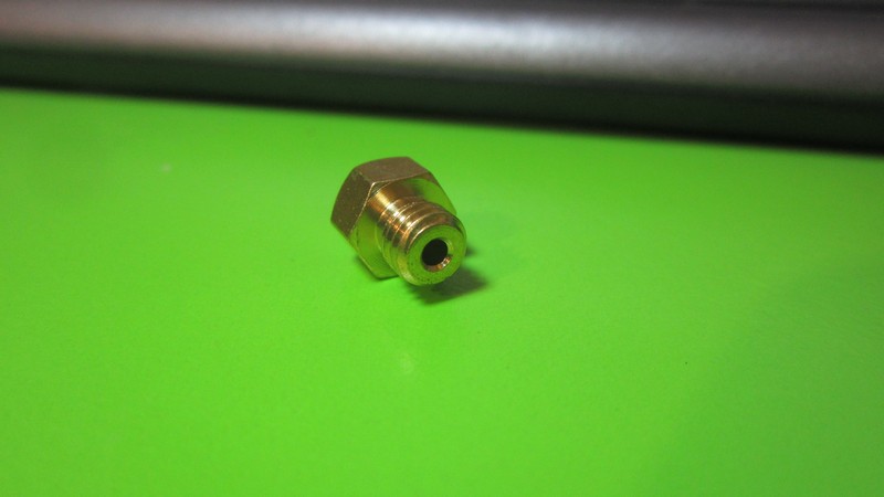 Сопло для екструдера МК8 3D-принтера під 1.75 мм филамент (нитка). Чим менший вихідний діаметр сопла, тим вища точність роботи, але повільніший сам процес друку.