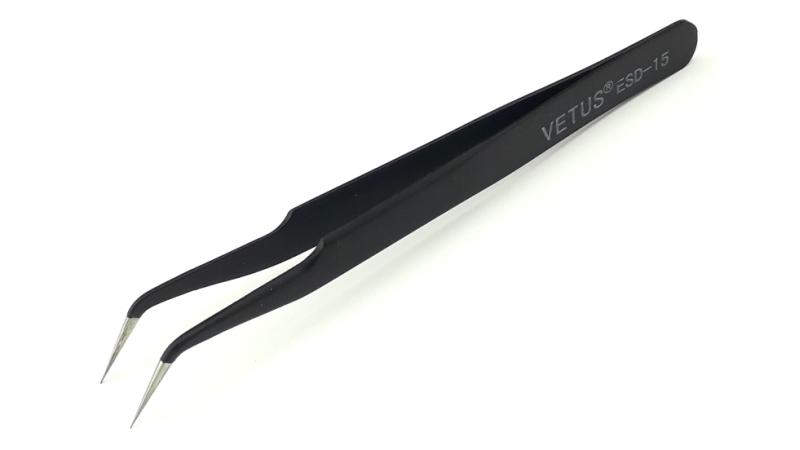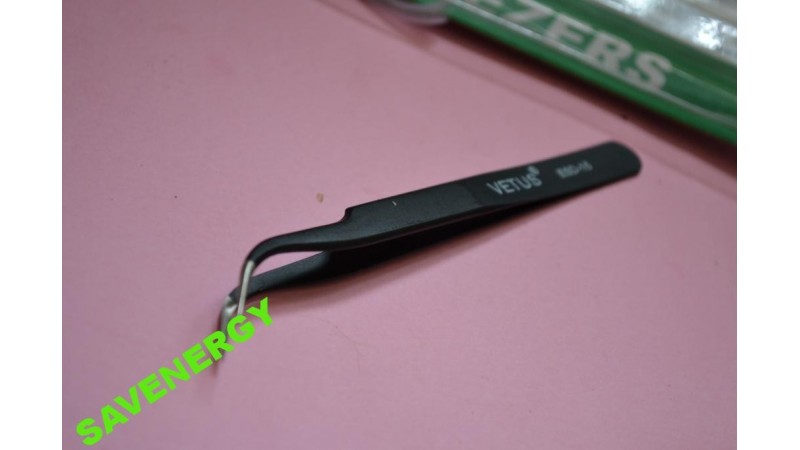 Призначений для позиціонування і утримання циліндричних компонентів поверхневого монтажу в процесі пайки або розпайки, а також для переміщення і утримування монолітних чіпів 5 мм в процесі пайки. Пінцет підходить для робіт з радіодеталями, робіт з бісером, інших дрібних робіт.