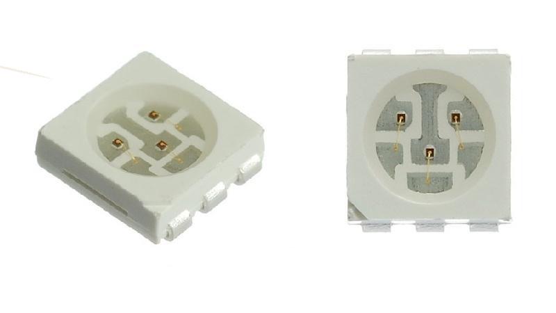 Світлодіод для поверхневого монтажу SMD 5050, колір світіння - RGB. Застосовуються в сучасних джерелах освітлення, таких як світлодіодні стрічки, лампи, світильники. Так само застосовуються в якості підсвічування в різних мініатюрних пристроях. SMD світлодіоди, завдяки низькому тепловому опору і хорошою герметичності, має хороше відведення тепла, запобігає розриву провідних доріжок, а також мають безліч інших переваг. Для нормальної роботи, SMD світлодіоди підключаються через драйвер, який забезпечує стабілізацію струму для сталості світіння світлодіода.
