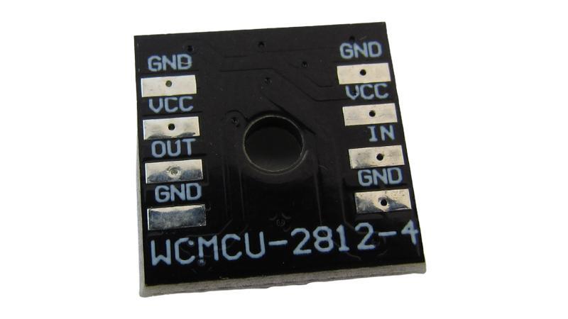 Друкована плата з розміщеними на ній 4-ма RGB світлодіодами WS2812, керованими по послідовній шині. Дуже зручно з'єднувати кілька таких плат послідовно. На платі є кріпильні отвори для монтажу в готовій конструкції.