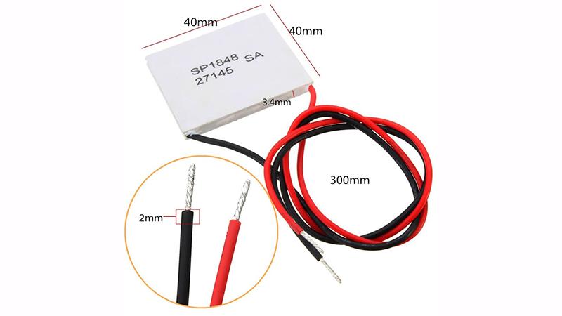 Термоелектричний генератор SP1848-27145 є керамічну плоску пластину з розмірами 40 на 40 і товщиною 4 мм. Між керамічними пластинами термогенератора розташовані послідовно з'єднані напівпровідникові елементи n і p типів. Корпус модуля термогенератора герметичний, поверхня кераміки відшліфована, проте, застосування теплопровідної пасти обов'язково. До висновків термоелемента припаяні чорний (-) і червоний (+) дроти.