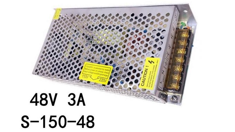 Імпульсний блок живлення S-48-150, ВИХІДНА НАПРУГА 48 В, СТРУМ ДО 3 А, ПОТУЖНІСТЬ 150 В. Вихідна потужність залежить від вхідного сигналу і максимально складає 150 Вт.