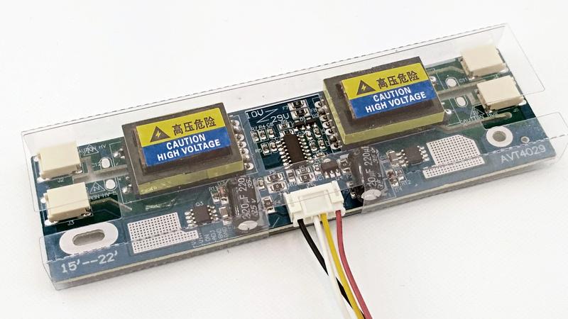 Інвертор знаходиться в гнучкому корпусі з пластику. Плата обладнана отворами для фіксації. У комплекті є кабель для підключення плати монітора.