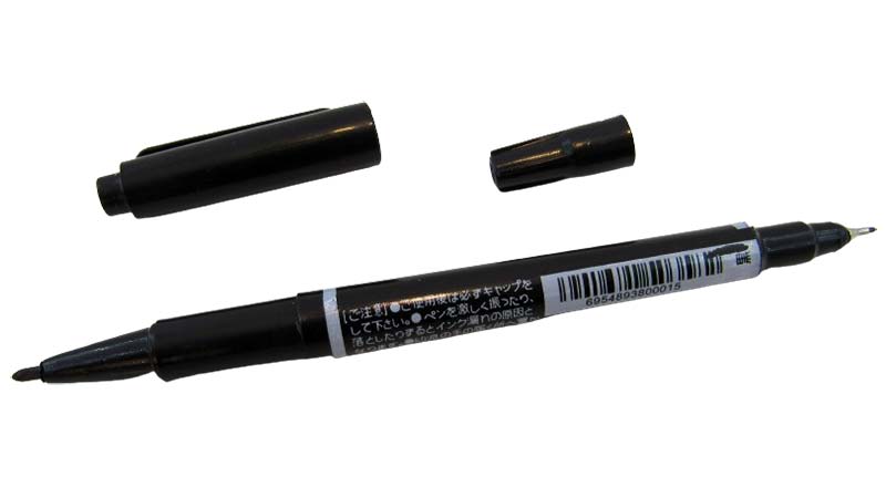 Малий перманентний маркер двосторонній два розміри пера. Колір - чорний.